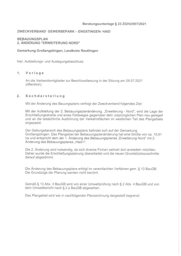 2. Änderung Bebauungsplan "Erweiterung Nord"